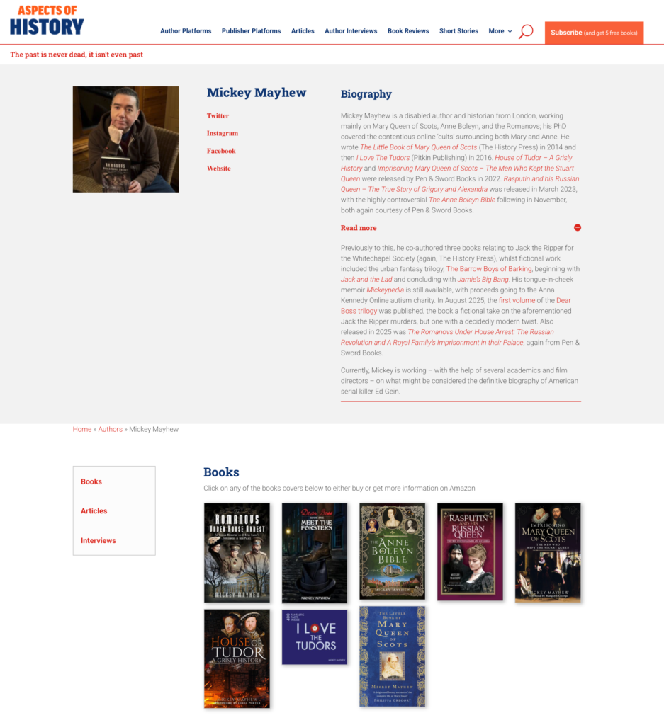 Aspects of History author platform launched by Mickey Mayhew | 3 April 2026 | Author & Academic | 0 comments Click here to view Mickey’s author platform on Aspects of History